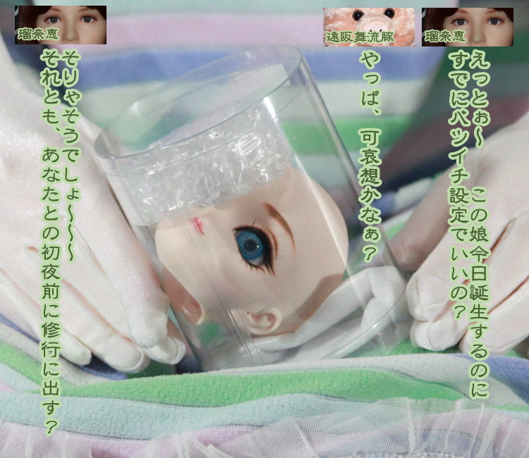 | ちび萌奥さんは小香奈恵を筆頭に小多恵子まで迎えて落ち着いていましたが、 にょっこりにょっこり御迎え機運が盛り上がり、と同時に『Rose Moon』で カスタムヘッド『Luna』ちゃんを発見した事が最大の要因で、 ちび萌奥さんズ増員〜完結へ向けて再稼動した感じです。 等身大奥さんズが増える限り完結とはなりませんがね(苦笑) しかし〜Rose Moonのサイトを見てみると、 平成25年01月22日現在、カスタムヘッドのほとんどが売り切れ状態なのに、 よく遠阪舞流豚の為に残っててくれました(ToT) Lunaちゃんヘッドはオビツヘッド(50−01)のカスタムなので、 今後のカスタムの参考にもなりますねぇ。 次回のちび萌奥さんは自分でメイクしてみようと思っとります。 順番から言えば『小美奈恵』からですね。 何と言っても、メイク待ちの素体ヘッドがゴロゴロゴロゴロしてますので(;^◇^;)ゝイヤァ っつ〜〜〜〜事で、小瑠奈恵ちゃんの話。 Rose Moonサイトはそんなに巡回してませんが、 たまたま細部まで見ていたらLunaちゃんが目に留まり、 びびび!と来ました。一目惚れ(こればっか・・・) まぁ、伴侶としてヒトガタを1体愛でている方にはわからないと思いますが(苦笑) 『○○ちゃんは俺の嫁』系の方にはわかっていただけるかな? 私の場合は『○○ちゃんも俺の嫁』って鬼畜系ですがね・・・ んでもって、注文は平成25年01月12日にポチッと逝っちゃいました♪ 嫁入りは16日です。 ![]() と、同時にボディも調達せねば!っつ〜〜〜事で、PARABOXに注文♪ 下着とウィッグと衣装。 それとヘッドが50−01なので、シリコンキャップもピッタリのものを入手♪ 17日に我が家に到着しました。 ![]() そ〜し〜て〜夜勤とかあったので、なかなか弄れなかったんですが、 21日にやっと降誕しました〜〜〜〜(o^◇^o)ノ 等身大の瑠奈恵の北欧とのハーフ、バツイチ、 御色気担当のイメージを大切にして、ウィッグ等を選んでみました。 アイは青目で設定されていたんですが、 我が家に来てから変えてもいいかなっ♪と思っていましたが、 脳内では青目が固定されてまして、交換はしませんでした。 ![]() ![]() 修行って? だから、初夜前に経験を積んでもらって・・・ だ・だめ〜〜!!! だから、今日誕生なのにバツイチ設定で良いの?って聞いたの! 小瑠奈恵も俺の嫁なんだから( ̄^ ̄) (^^;)![]() 等身大に比べてもこの存在感。んで!変身!!!!! ![]() ![]() 会話用。 系譜用。 紹介用。御迎え記念画像。 ![]() (平成25年01月22日) |